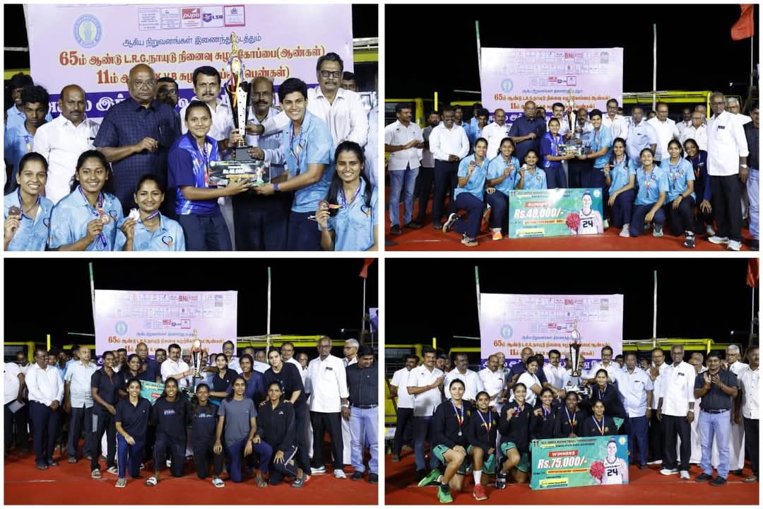 கரூரில் அகில இந்திய கூடைப்பந்து போட்டிகள் நடைபெற்றன. கரூர் திருவள்ளுவர் மைதானத்தில் வெற்றி பெற்ற அணிகளுக்கு பரிசளிப்பு விழா நடைபெற்றது. ஆண்கள் பிரிவு இறுதி ஆட்டத்தில் சென்னை ஐஓபி- புதுடெல்லி இந்தியன் ஆர்மி அணிகள் விளையாடின. மிகவும் பரபரப்பாக நடைபெற்ற இந்த ஆட்டத்தில் இரு அணிகளும் சம புள்ளிகளை பெற்றதால் கூடுதல் நேரம் ஒதுக்கப்பட்டது. இந்த விறுவிறுப்பான ஆட்டத்தில் சென்னை ஐஓபி அணி வெற்றி பெற்று எல் ஆர் ஜி நாயுடு நினைவு கோப்பை மற்றும் ரூ.1 லட்சம் ரொக்க பரிசை வென்றது. இந்தியன் ஆர்மி அணிக்கு ரூ. 80,000 மற்றும் பரிசுக்கோப்பை வழங்கப்பட்டது. சென்னை இந்தியன் வங்கி அணி மூன்றாம் இடம், திருவனந்தபுரம் கேஎஸ் இபி அணி நான்காம் இடத்தை பெற்றன. பெண்கள் போட்டியில் புள்ளிகள் அடிப்படையில்செசகந்திராபாத் சவுத் சென்ட்ரல் ரயில்வே அணி முதலிடம் பிடித்து ரூ.75 ஆயிரம் ரொக்கப் பரிசு கேவிபி சுழற் கோப்பையை பெற்றது. இரண்டாம் இடத்தை ஹூப்ளி சவுத் வெஸ்டர்ன் ரயில்வே அணியும், மூன்றாம் இடத்தை கேரளா போலீஸ் அணியும் நான்காம் இடத்தை சென்னை சதர்ன் ரயில்வே அணியும் பிடித்தன. கரூர் கூடைப்பந்து சங்கத் தலைவர் வி என்சி.பாஸ்கர் வரவேற்றார். துணைத் தலைவர் சூரிய நாராயணா, செயலாளர் கமாலுதீன், நிர்வாகிகள் இந்திர மூர்த்தி, ஆடிட்டர் சண்முகசுந்தரம், பாலசுப்பிரமணியம், வெங்கடேசன்,அமீன், பெரியசாமி முன்னிலை வைத்தனர். கரூர் மாவட்ட கலெக்டர் தங்கவேல், கரூர் வைசியா வங்கி பொது மேலாளர் முரளி ஆகியோர் சிறந்த வீரர்களுக்கு பரிசுகளை வழங்கினர்.